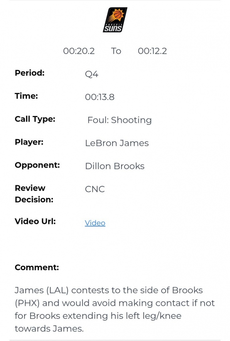 12月16日讯 昨日NBA常规赛,湖人116-114客场险胜太阳,NBA官方出具了本场比赛最后两分钟的裁判报告。